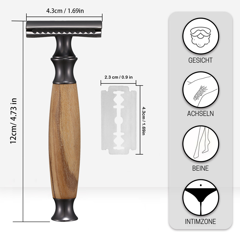 - Lieferumfang: 1× Rasierhobel, 1× Ständer, 10× Ersatzklingen, 1× Reinigungsbürste